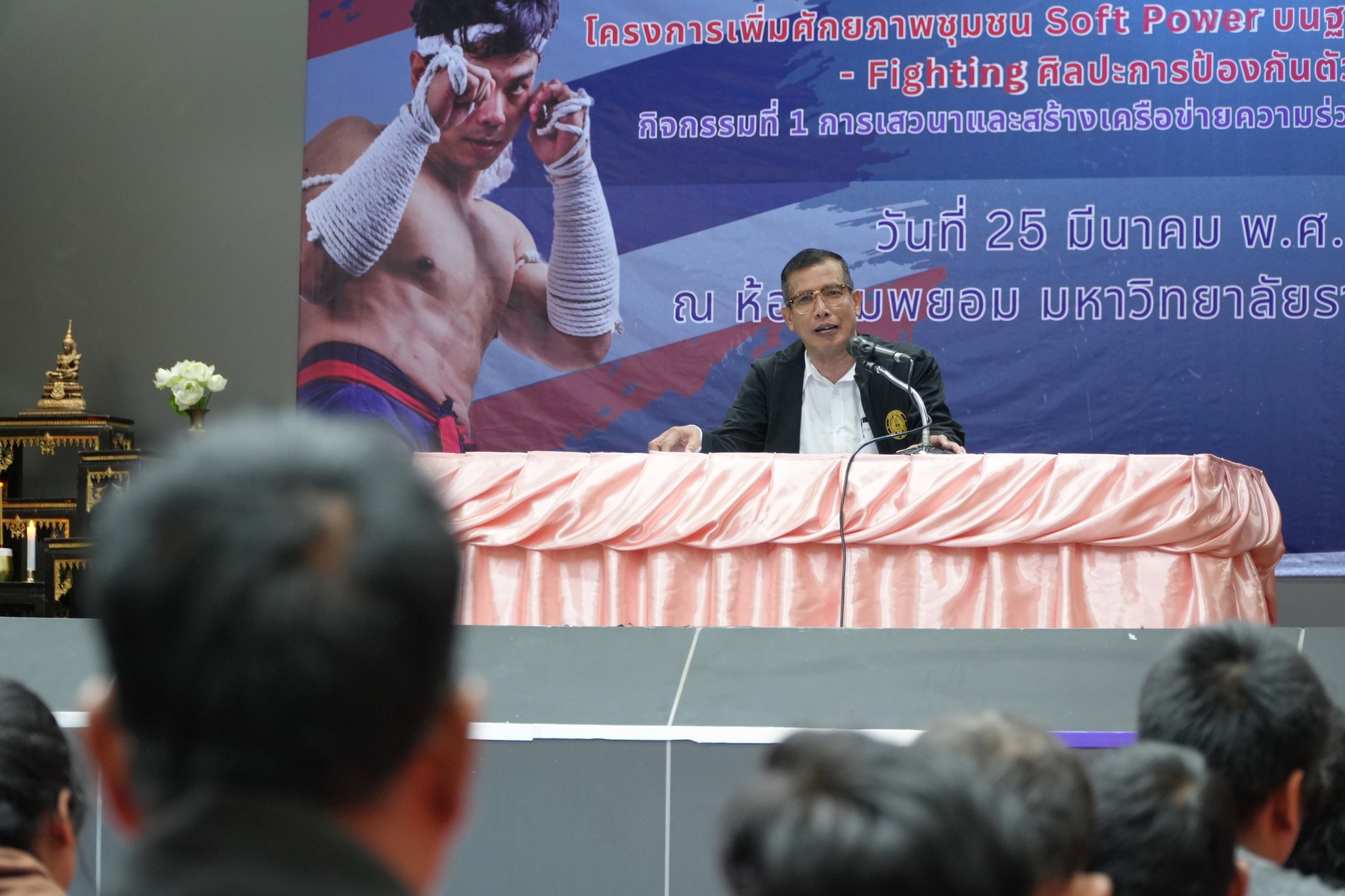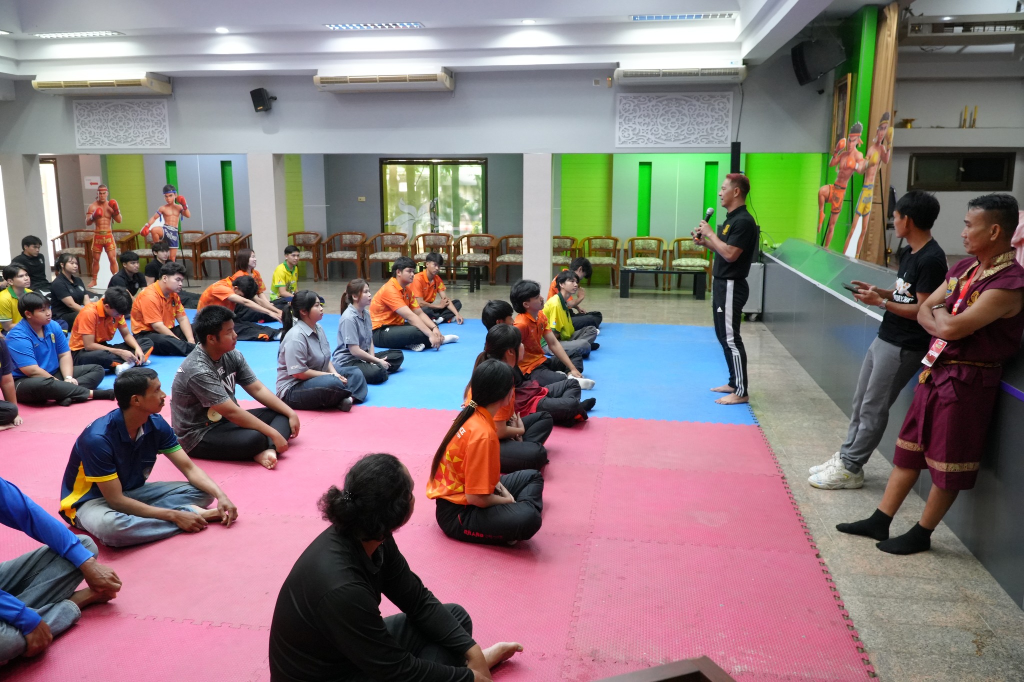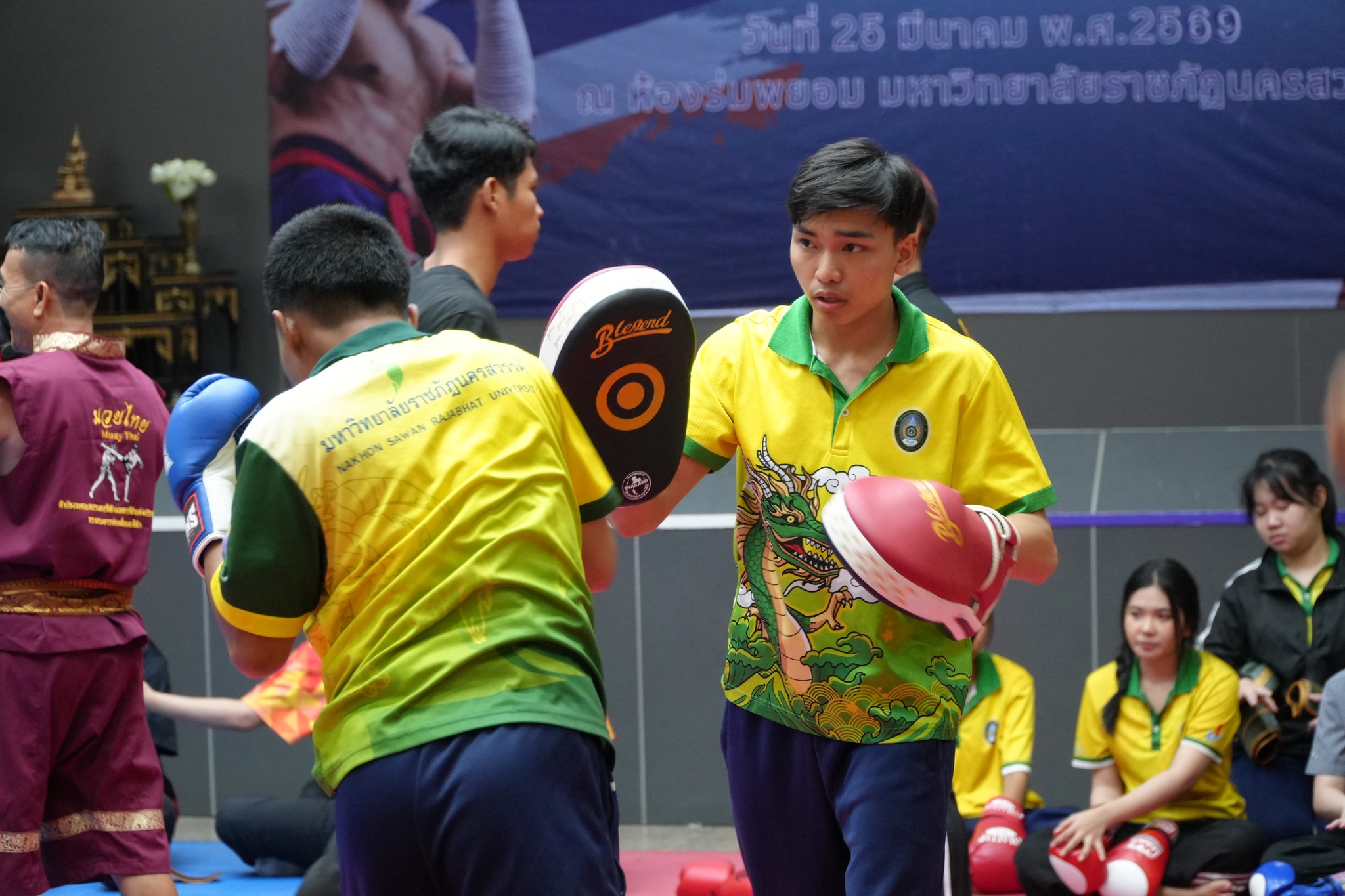 ภายในกิจกรรม ผู้เข้าร่วมซึ่งเป็นนักศึกษาและบุคลากรที่สนใจ ได้รับทั้งความรู้เชิงทฤษฎีและการฝึกปฏิบัติจริงอย่างเข้มข้น โดยมีวิทยากรผู้เชี่ยวชาญ ได้แก่ อาจารย์สมพงษ์ แก้วกัณหา จากค่ายมวย ช.ไทยเศรษฐ์ คุณณกรณ์ ศรีจิ๋ว และ จ่าสิบตำรวจ กฤษณะ วรรณสุทธะ ร่วมถ่ายทอดองค์ความรู้ด้านมวยไทย ตั้งแต่พิธีไหว้ครู ทักษะพื้นฐาน “นวอาวุธ” การเตะ เข่า ศอก การฝึกซ้อมกับเป้าล่อ (Pad Work) ตลอดจนเทคนิคการป้องกันตัวในสถานการณ์จริง