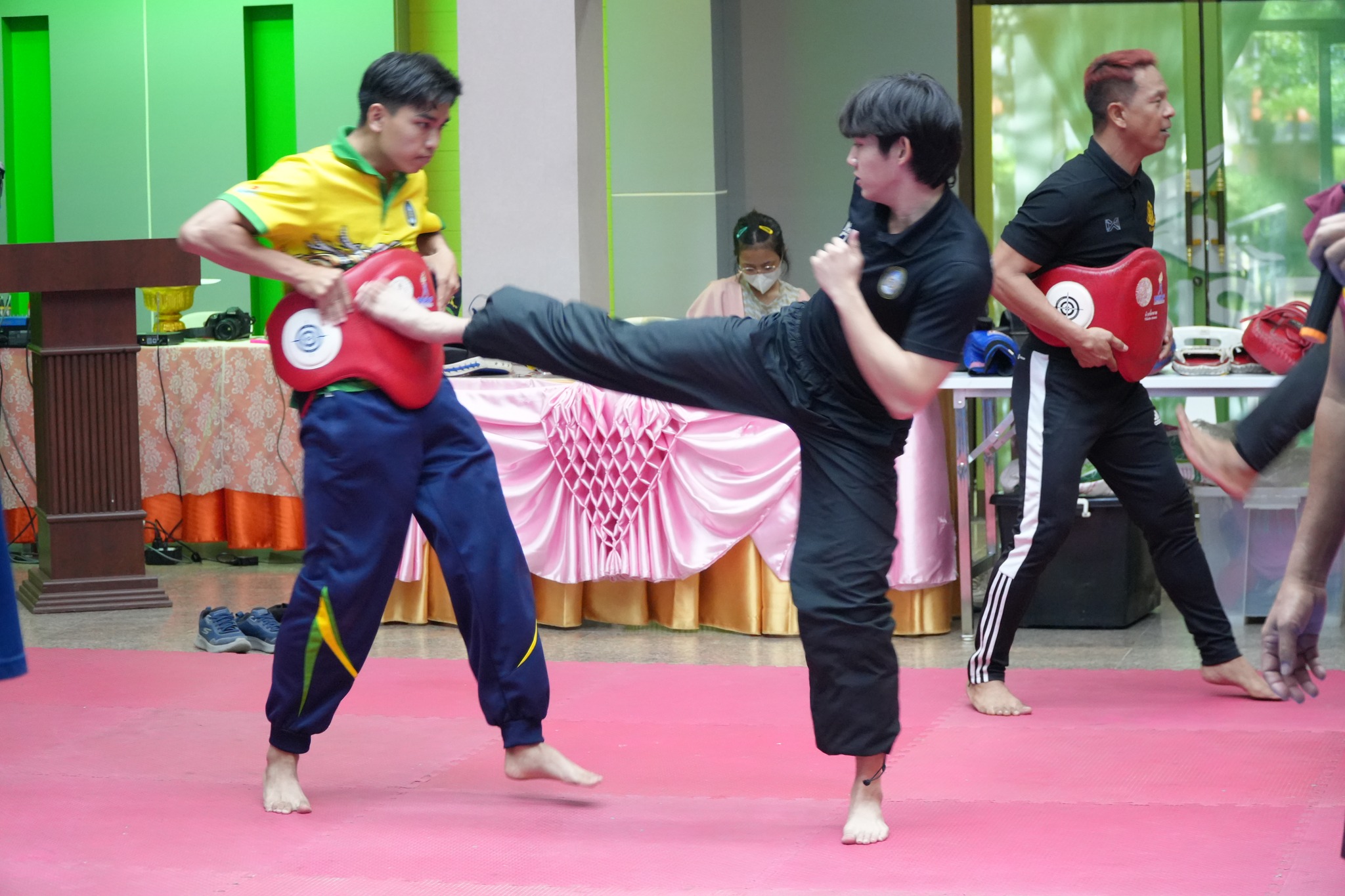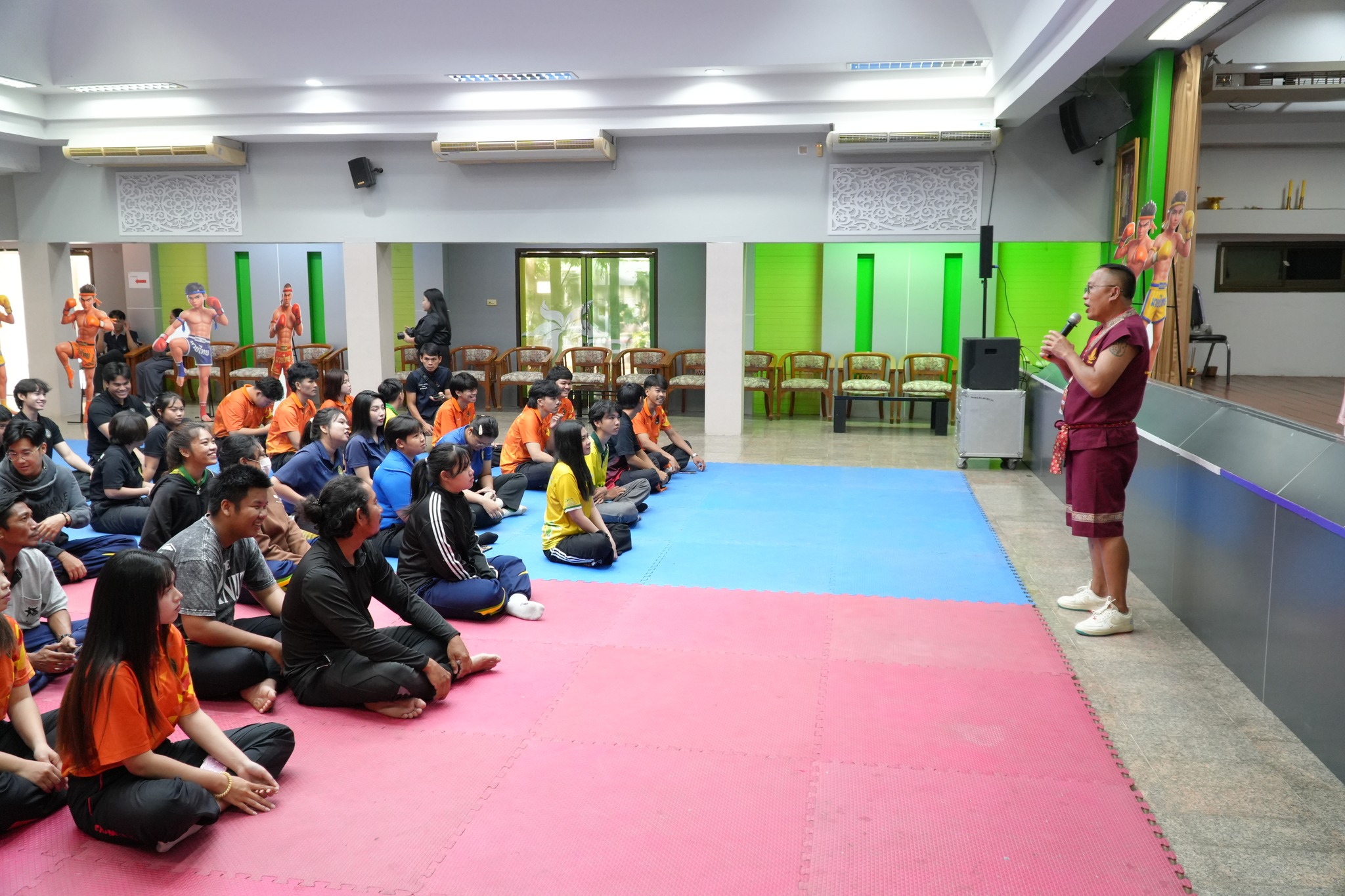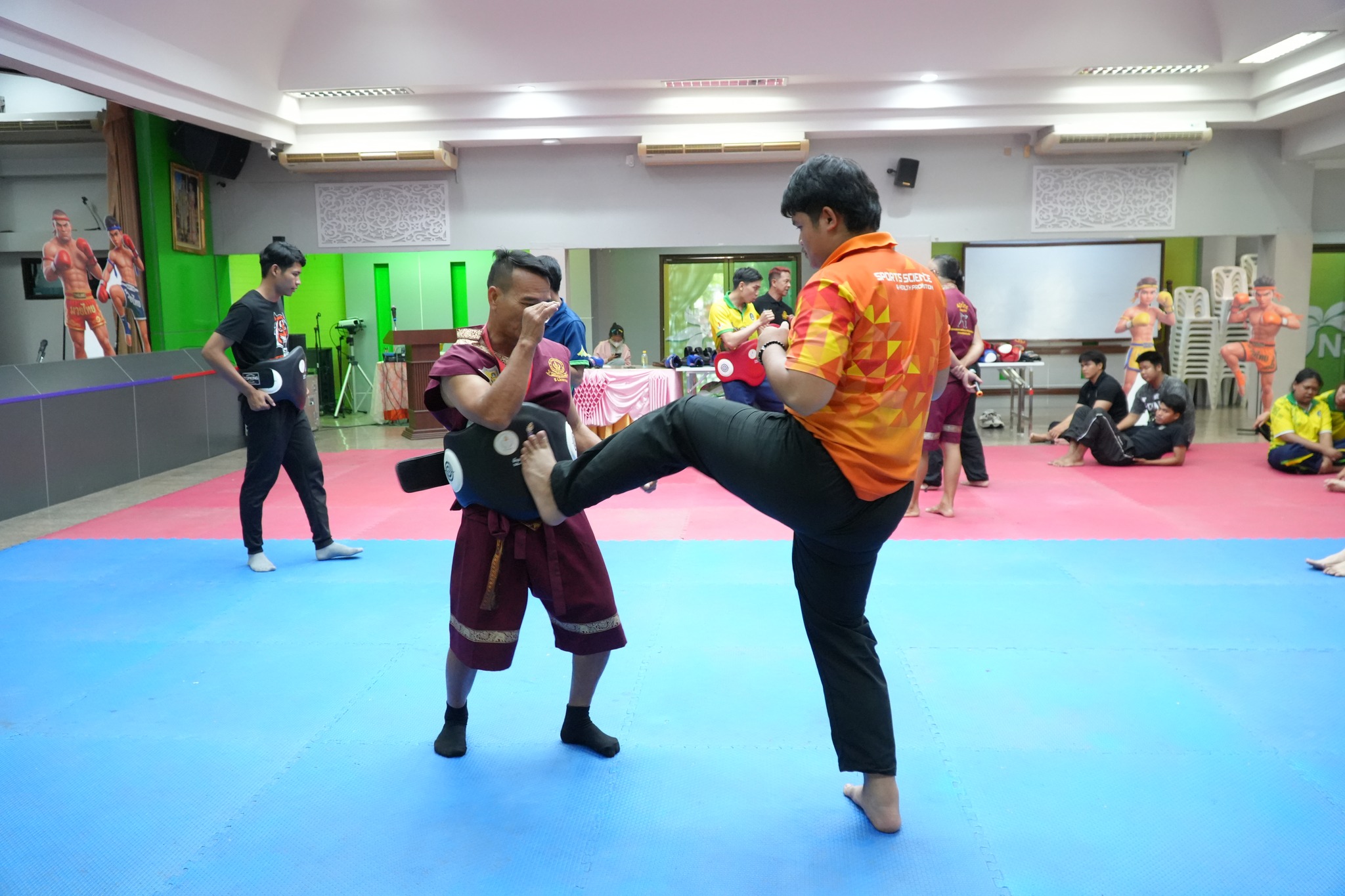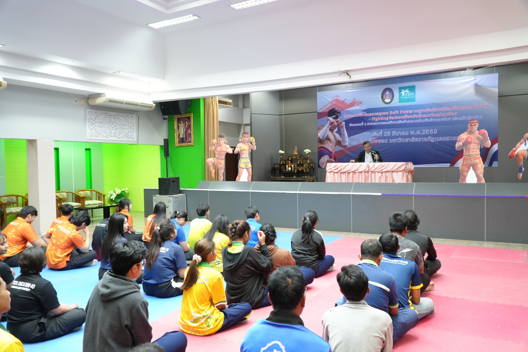 ภายในกิจกรรม ผู้เข้าร่วมซึ่งเป็นนักศึกษาและบุคลากรที่สนใจ ได้รับทั้งความรู้เชิงทฤษฎีและการฝึกปฏิบัติจริงอย่างเข้มข้น โดยมีวิทยากรผู้เชี่ยวชาญ ได้แก่ อาจารย์สมพงษ์ แก้วกัณหา จากค่ายมวย ช.ไทยเศรษฐ์ คุณณกรณ์ ศรีจิ๋ว และ จ่าสิบตำรวจ กฤษณะ วรรณสุทธะ ร่วมถ่ายทอดองค์ความรู้ด้านมวยไทย ตั้งแต่พิธีไหว้ครู ทักษะพื้นฐาน “นวอาวุธ” การเตะ เข่า ศอก การฝึกซ้อมกับเป้าล่อ (Pad Work) ตลอดจนเทคนิคการป้องกันตัวในสถานการณ์จริง